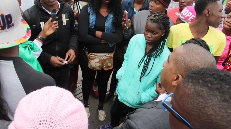 Sus declaraciones estuvieron enmarcadas de arengas y manos empuñadas de los jóvenes apostados en frente de la esfinge de Simón Bolívar, en la plaza que lleva su nombre.