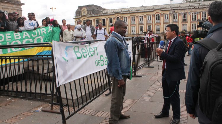Lo dijo en la tarde de hoy martes el gobernante de los Chocoanos Yohanny Carlos Alberto Palacios en medio de sus paisanos y al frente de los micrófonos de algunos medios de comunicación que asistieron a la rueda de prensa convocada a la plaza de Bolívar, y a donde se agolparon habitantes de la colonia Chocoana y los 120 estudiantes de la Universidad Tecnológica del Chocò que llegaron desde Quibdó.
